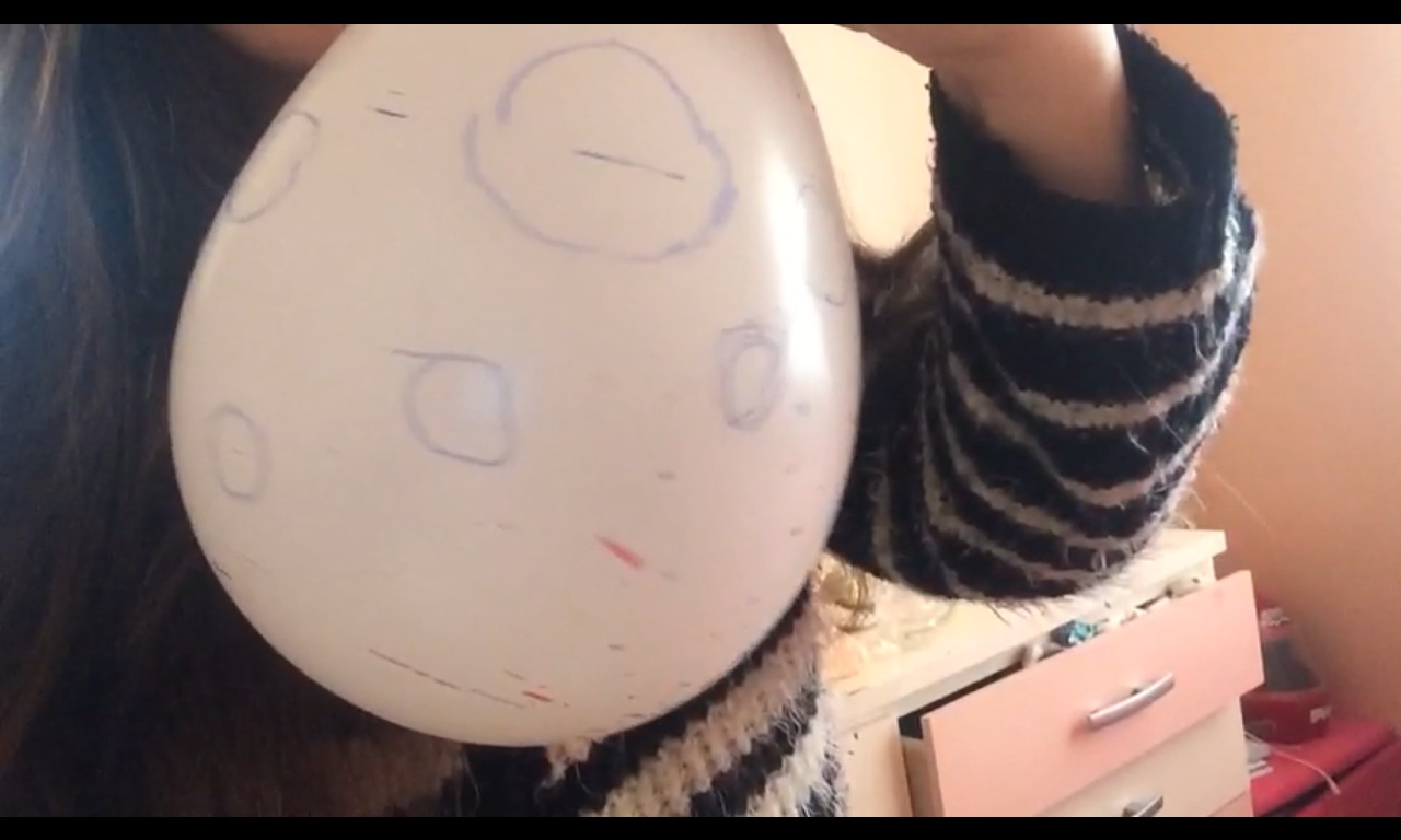 Desafio do Balão, esta foi a proposta da Profª Cristiane Wenglarek do Col. Est. Duque de Caxias de São Mateus, para os alunos realizarem em casa para entender melhor a teoria do Big Bang.