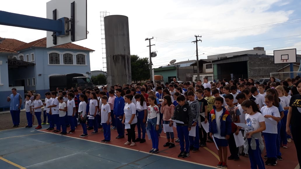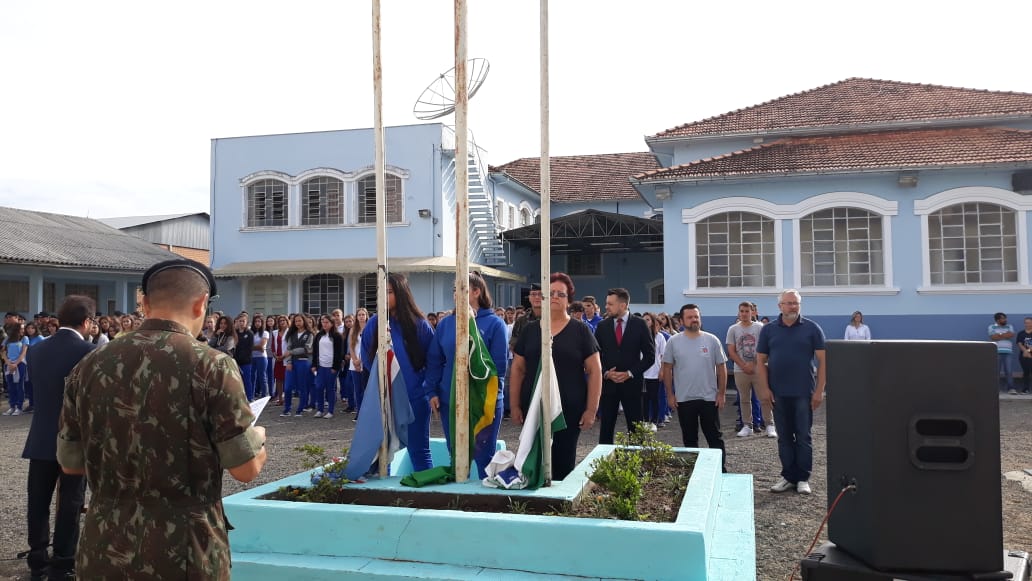 Após o toque de corneta pelo Sargento Walter houve o hasteamento das bandeiras, e na sequência, em posição de respeito cantaram-se os Hinos: Nacional Brasileiro acompanhado pela Banda do 5º Batalhão de Engenharia e Combate Blindado e hino do município de União da Vitória, respectivamente nessa ordem.